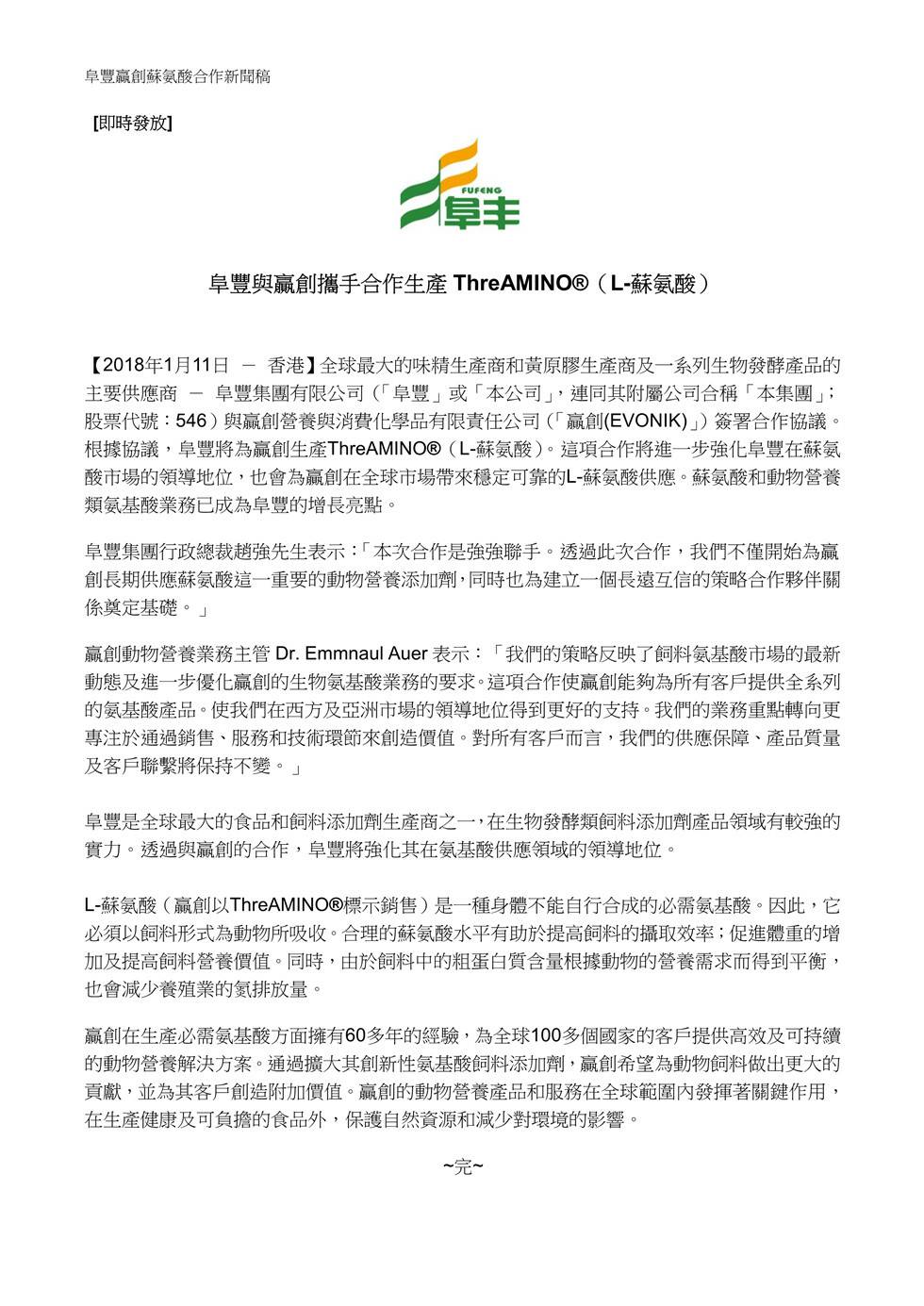 乐竞官网-乐竞(中国)与赢创携手合作生产ThreAMINO®(L-苏氨酸)
